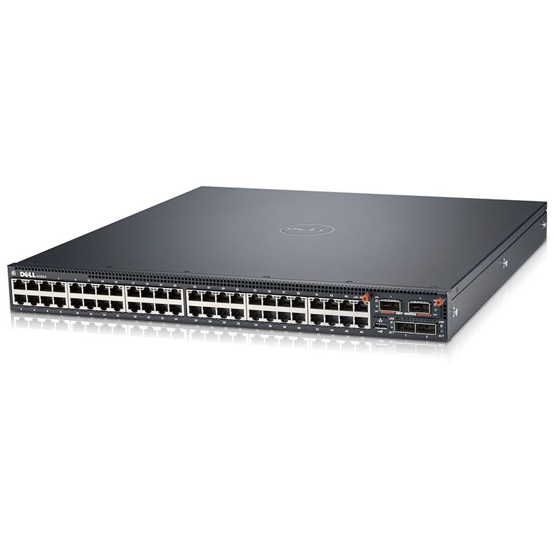 Details: Dell Networking N4064, 48x 10GBASE-T, 2x 40GbE QSFP+port, 1x Modular Bay, 2x AC PSU, airflow from IO to PSU